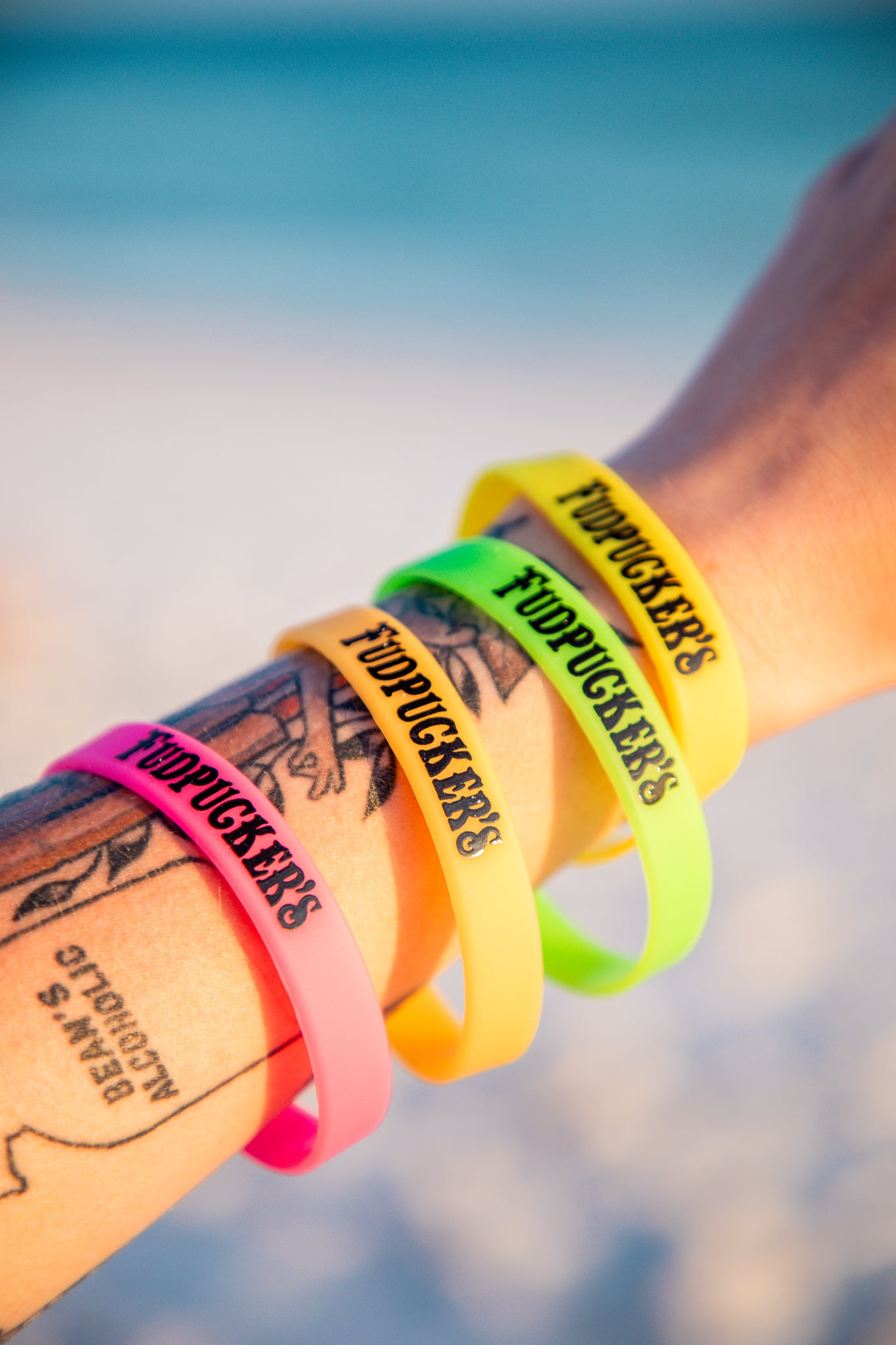 Add a splash of fun to your wrist with Fudpucker Silicone Bracelets! Perfect for showing off your love for the beachside vibe, these durable, colorful bracelets are comfy to wear all day.