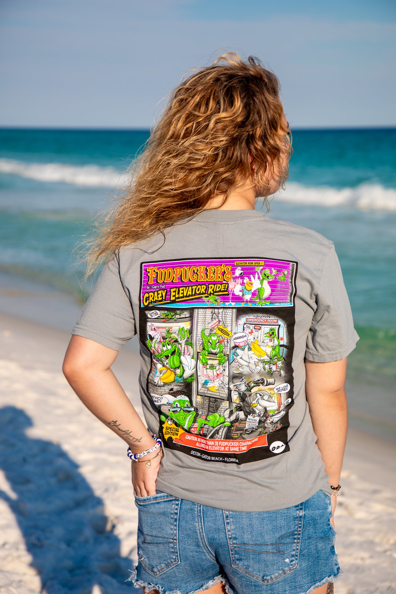Add a splash of excitement to your day with Fudpucker's Crazy Elevator Ride T-shirt! This playful design captures the thrill of a wild ride, perfect for those who love fun and comfort. Soft and stylish, it’s your go-to tee for turning everyday moments into an adventure. Hop on and enjoy the ride!