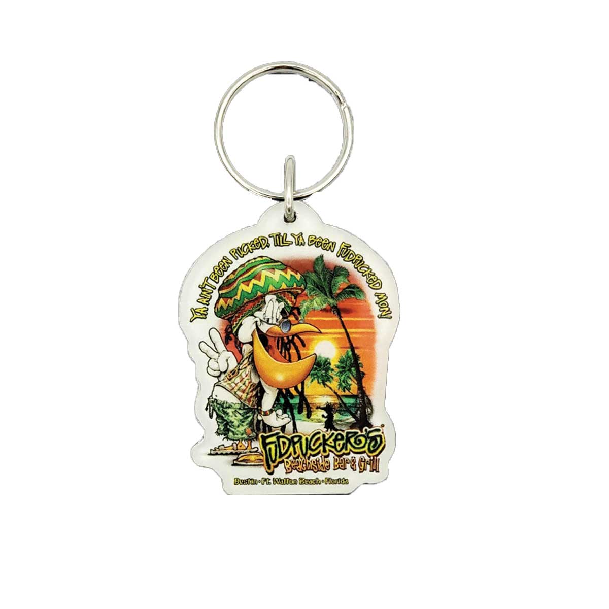 Ya Ain't Been Pucked, Till Ya Been Fudpucked Mon! This vibrant and fun keychain is a nod to the laid-back, tropical vibes of Fudpucker's Beachside Bar & Grill. Featuring a playful "Rasta Fud" design, it's the perfect way to add a touch of island spirit to your keys, backpack, or anything else that needs a little Fudpucker's flair.