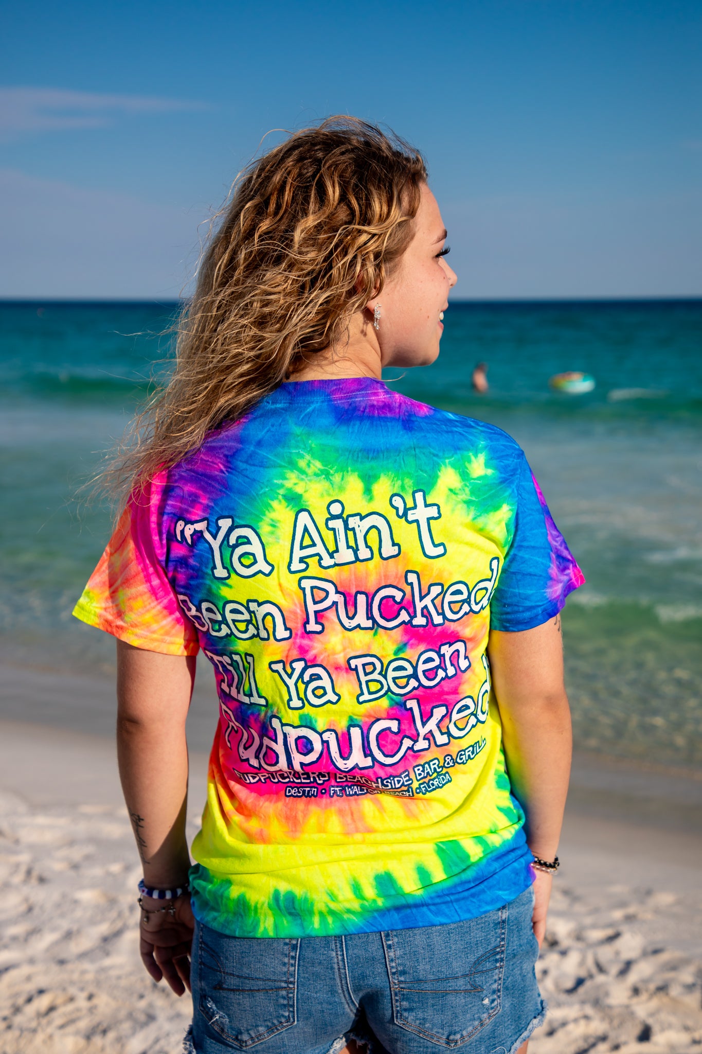 Bring the fun wherever you go with the Ya Aint Been Pucked Tie Dye Short Sleeve tee. Vibrant colors and a relaxed fit make it your go-to for easy, laid-back days. Perfect for beach vibes, backyard hangs, or just turning heads with that playful style only tie dye can deliver.